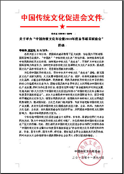 ★百福堂黄晨峰先生荣获中国传统文化促进会邀请参加“中国传统文化年会暨年度易学精英联谊会”